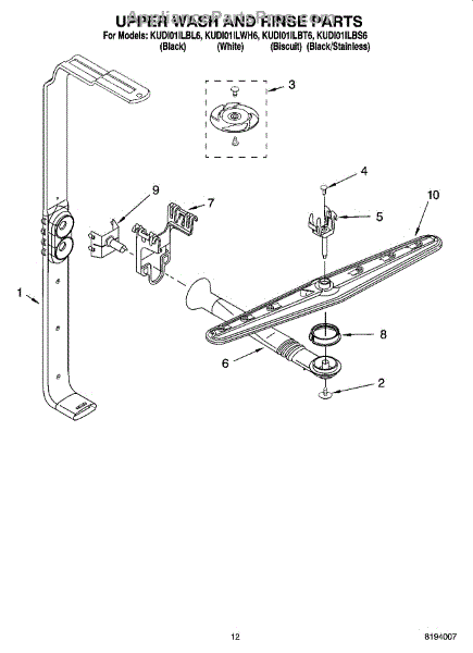 Parts for Kitchenaid KUDI01ILBS6: 10 - Upper Wash And Rinse Parts