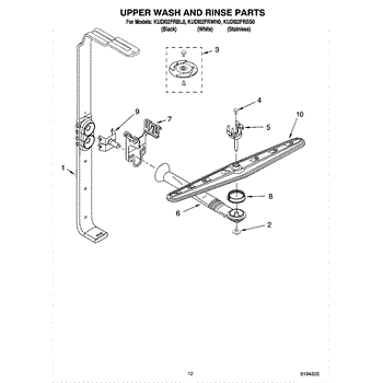 Parts for Kitchenaid KUDI02FRSS0: 10 - Upper Wash And Rinse Parts