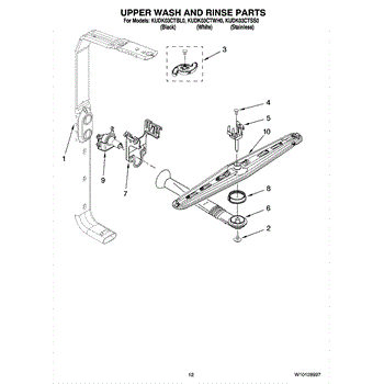 Parts for Kitchenaid KUDK03CTWH0: 10 - Upper Wash And Rinse Parts