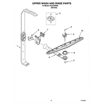 Parts for Kitchenaid KUDL02IRBS0: 10 - Upper Wash And Rinse Parts