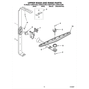 Parts for Kitchenaid KUDP01DLBL2: 11 - Upper Wash And Rinse Parts