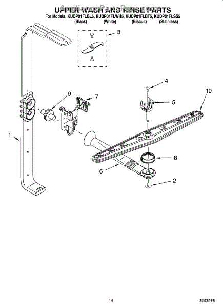 This is the dishwasher upper spray arm that delivers water across the top rack for effective cleaning. It replaces a worn or damaged spray arm to restore proper water distribution and rinse performance. What it does: