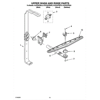 Parts for Kitchenaid KUDP02FRWH0: 10 - Upper Wash And Rinse Parts