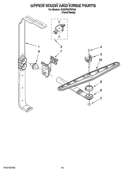 Parts for Kitchenaid KUDP02FSPA4: 10 - Upper Wash And Rinse Parts