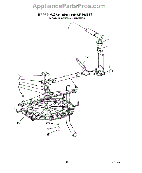 Parts for Kitchenaid KUDP22ST4: 09 - Upper Wash And Rinse Parts