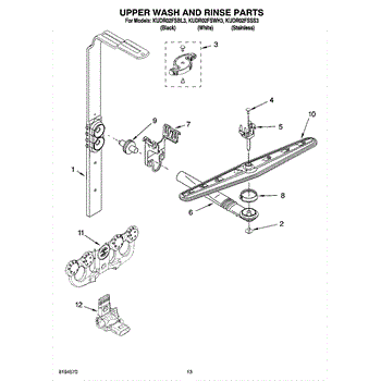 Parts for Kitchenaid KUDR02FSSS3: 10 - Upper Wash And Rinse Parts