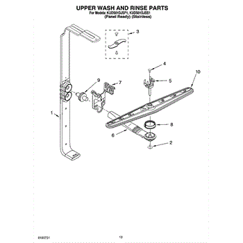 Parts for Kitchenaid KUDS01DJSP1: 10 - Upper Wash And Rinse Parts