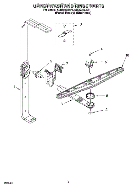 Parts for Kitchenaid KUDS01DJSS1: 10 - Upper Wash And Rinse Parts