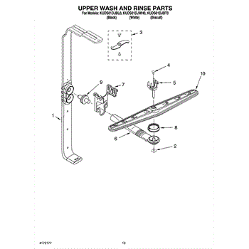 Parts for Kitchenaid KUDS01DJWH0: 10 - Upper Wash And Rinse Parts