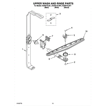 Parts for Kitchenaid KUDS01DLBL1: 10 - Upper Wash And Rinse Parts