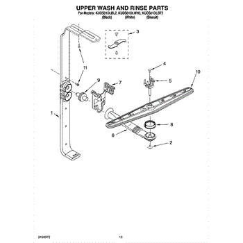Parts for Kitchenaid KUDS01DLWH2: 10 - Upper Wash And Rinse Parts