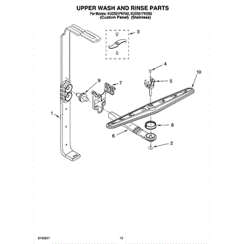 Parts for Kitchenaid KUDS01FKPA0: 10 - Upper Wash And Rinse Parts
