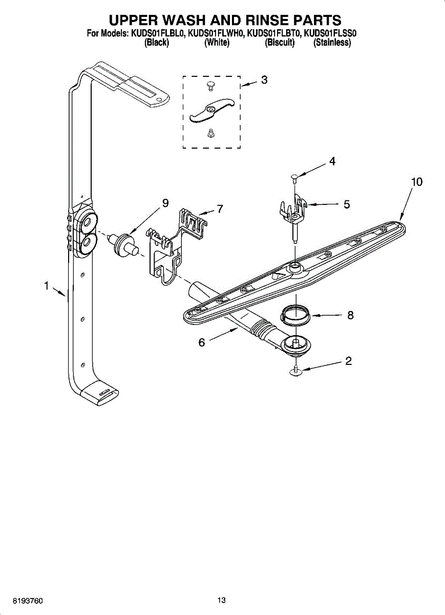Adjustable manifold that connects the upper rack to the rear water feed tube. Replace if cracked, punctured, corroded, or missing the seal probe.