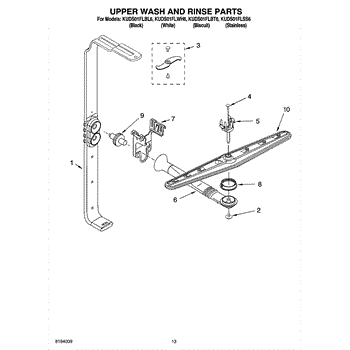 Parts for Kitchenaid KUDS01FLWH6: 10 - Upper Wash And Rinse Parts
