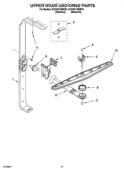 Parts for Kitchenaid KUDS01VMMT0: 10 - Upper Wash And Rinse Parts