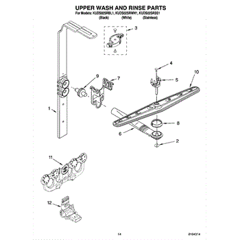 Parts for Kitchenaid KUDS02SRBL1: 11 - Upper Wash And Rinse Parts