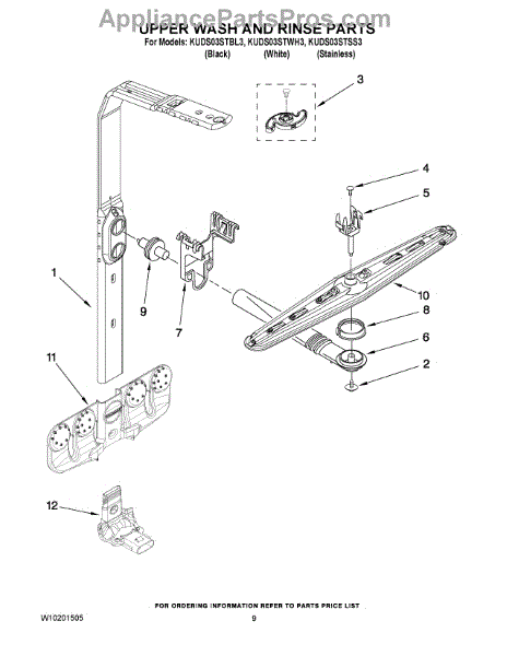 Parts for Kitchenaid KUDS03STWH3: 07 - Upper Wash And Rinse Parts