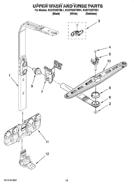 Parts for Kitchenaid KUDT03STWH1: 10 - Upper Wash And Rinse Parts