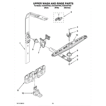 Parts for Kitchenaid KUDU03STBL0: 10 - Upper Wash And Rinse Parts