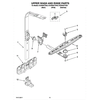 Parts for Kitchenaid KUDW03CTBL0: 10 - Upper Wash And Rinse Parts