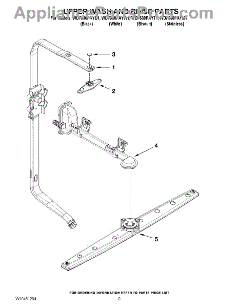 Note: For the spray arm retainer, use part number WP3400918.