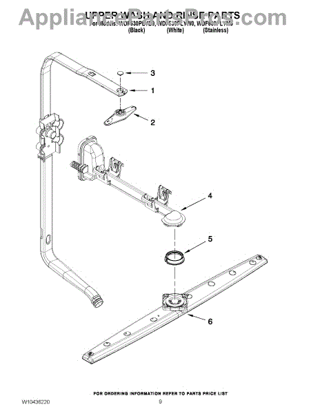 Note: For the spray arm retainer, use part number WP3400918.