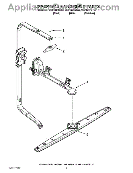 Note: For the spray arm retainer, use part number WP3400918.