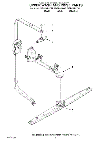 Note: For the spray arm retainer, use part number WP3400918.