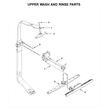 The Upper Spray Arm is an OEM part for Whirlpool dishwashers. It is responsible for distributing water throughout the upper part of the dishwasher during the wash cycle, ensuring dishes are cleaned effectively.