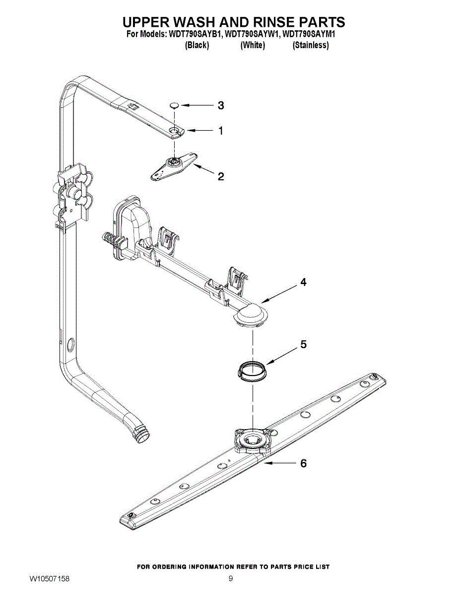 Note: For the spray arm retainer, use part number WP3400918.