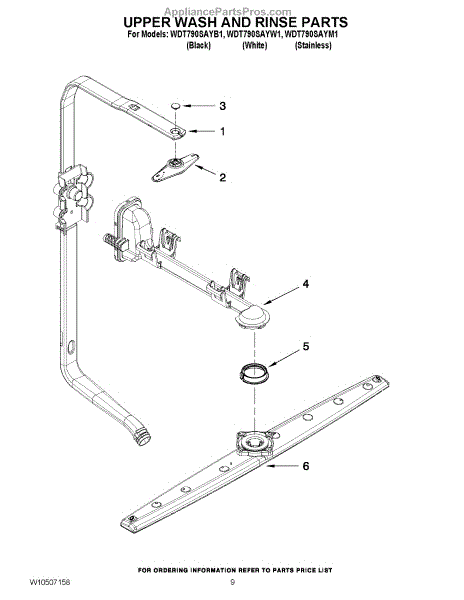 Note: For the spray arm retainer, use part number WP3400918.