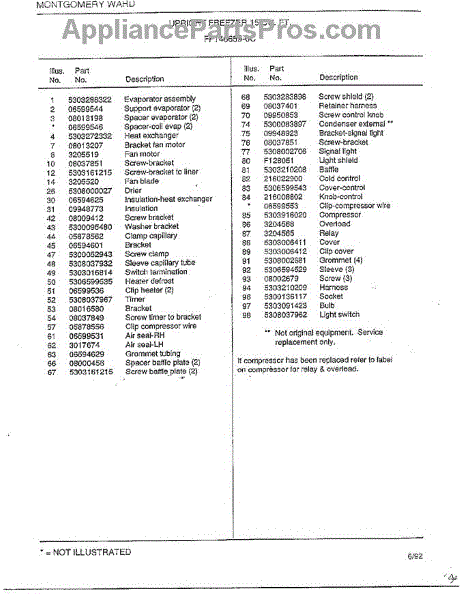 This is a compressor used in several types of home appliances. The compressor is designed to take cold gas in the appliance and place it under pressure so the gas raises in temperature. It is then moved through the refrigerator system to ensure the unit stays cold throughout the appliance. This part can become damaged or malfunction, which may cause the motor to stop running, make the motor noisier, or cause the motor to never stop running.If this happens, the compressor will need to be replaced. A basic set of tools will be needed. A pair of work gloves can also be useful. First, locate the compressor as it may be in various locations depending on the appliance model. Unplug the appliance before removing the compressor. Install the new compressor using the original bolts and nuts before turning the power back on and resuming normal use.This part is sold on an individual basis. The compressor is made to be used with refrigerators, ranges, stoves, ovens, air conditioners, and freezers created by Gibson, Frigidaire, Kelvinator, Montgomery Wards, Westinghouse, Tappan, JCPenney, Universal, and Kenmore. It is an authentic OEM replacement part directly sourced from the manufacturer.