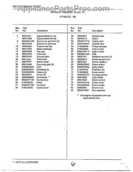 Parts for Frigidaire 49152-0B: Upright Freezer 19 Cubic Feet Page 6 Parts