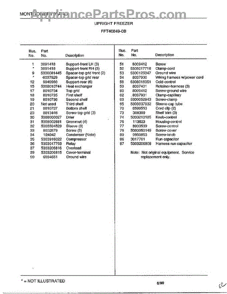 This is a compressor used in several types of home appliances. The compressor is designed to take cold gas in the appliance and place it under pressure so the gas raises in temperature. It is then moved through the refrigerator system to ensure the unit stays cold throughout the appliance. This part can become damaged or malfunction, which may cause the motor to stop running, make the motor noisier, or cause the motor to never stop running.If this happens, the compressor will need to be replaced. A basic set of tools will be needed. A pair of work gloves can also be useful. First, locate the compressor as it may be in various locations depending on the appliance model. Unplug the appliance before removing the compressor. Install the new compressor using the original bolts and nuts before turning the power back on and resuming normal use.This part is sold on an individual basis. The compressor is made to be used with refrigerators, ranges, stoves, ovens, air conditioners, and freezers created by Gibson, Frigidaire, Kelvinator, Montgomery Wards, Westinghouse, Tappan, JCPenney, Universal, and Kenmore. It is an authentic OEM replacement part directly sourced from the manufacturer.