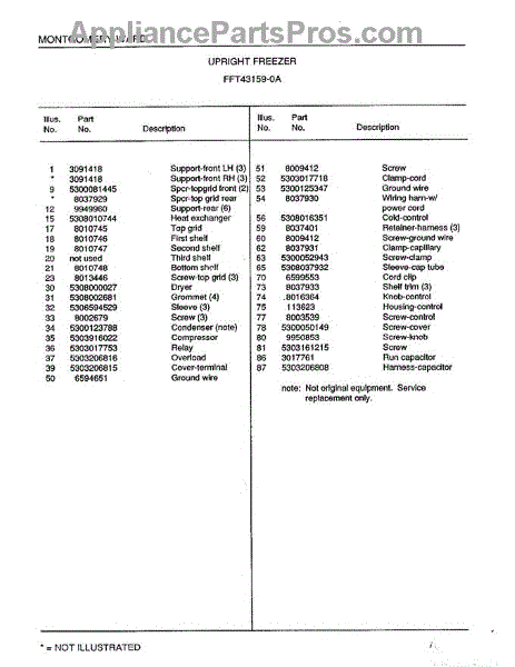 This is a compressor used in several types of home appliances. The compressor is designed to take cold gas in the appliance and place it under pressure so the gas raises in temperature. It is then moved through the refrigerator system to ensure the unit stays cold throughout the appliance. This part can become damaged or malfunction, which may cause the motor to stop running, make the motor noisier, or cause the motor to never stop running.If this happens, the compressor will need to be replaced. A basic set of tools will be needed. A pair of work gloves can also be useful. First, locate the compressor as it may be in various locations depending on the appliance model. Unplug the appliance before removing the compressor. Install the new compressor using the original bolts and nuts before turning the power back on and resuming normal use.This part is sold on an individual basis. The compressor is made to be used with refrigerators, ranges, stoves, ovens, air conditioners, and freezers created by Gibson, Frigidaire, Kelvinator, Montgomery Wards, Westinghouse, Tappan, JCPenney, Universal, and Kenmore. It is an authentic OEM replacement part directly sourced from the manufacturer.