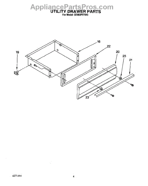 Parts for Whirlpool SE960PEYW0: 04 - Utility Drawer Parts