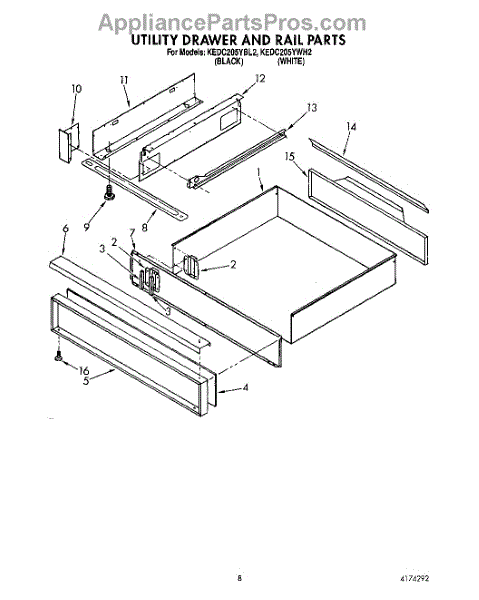 Parts for Kitchenaid KEDC205YBL2: 06 - Utility Drawer And Rail Parts