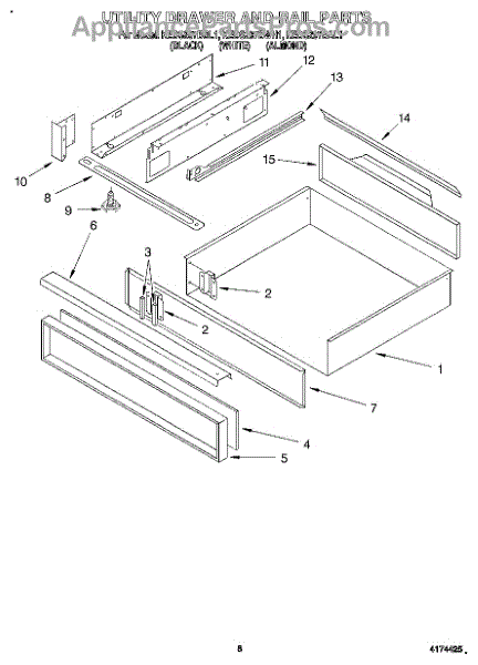 Parts for Kitchenaid KEDS207BWH1: 06 - Utility Drawer And Rail Parts