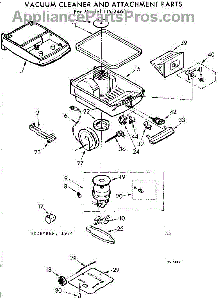 Parts for Kenmore 116.24601 (11624601, 116 24601): Vacuum Cleaner And Attachment Parts