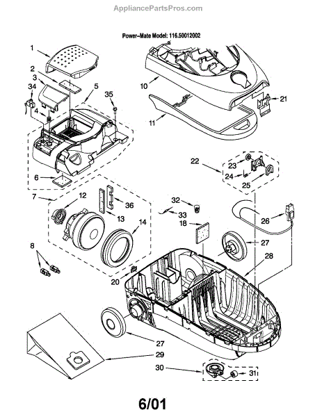 Parts for Kenmore 116.20012002 (11620012002, 116 20012002): Vaciuum Cleaner Parts