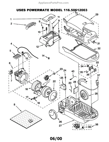 Parts for Kenmore 116.20612003 (11620612003, 116 20612003): Vacuum Cleaner Parts