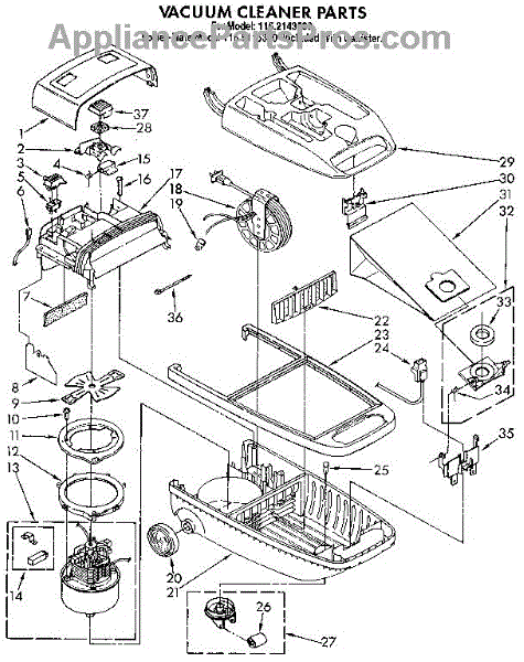 Parts for Kenmore 116.2143590 (1162143590, 116 2143590): Vacuum Cleaner Parts