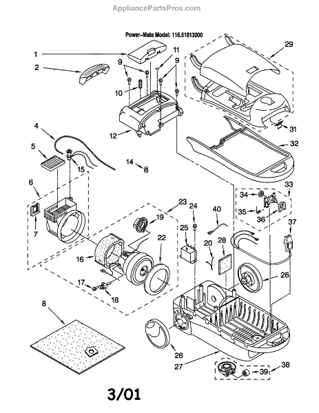 Parts for Kenmore 116.21813000 (11621813000, 116 21813000): Vacuum Cleaner Parts