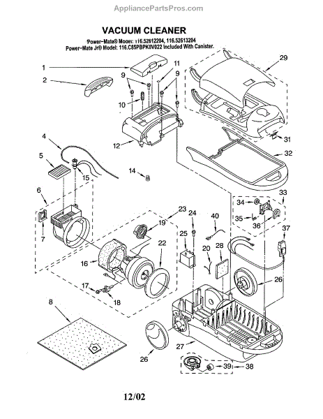 Parts for Kenmore 116.22612204 (11622612204, 116 22612204): Vacuum Cleaner Parts