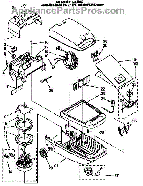 Parts for Kenmore 116.2511090 (1162511090, 116 2511090): Vacuum Cleaner Parts