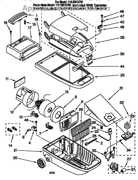 Parts for Kenmore 116.28512791 (11628512791, 116 28512791): Vacuum Cleaner Parts