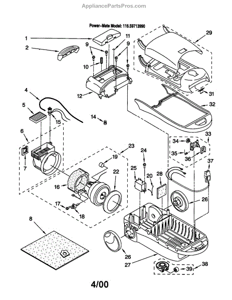 Parts for Kenmore 116.29713990 (11629713990, 116 29713990): Vacuum Cleaner Parts