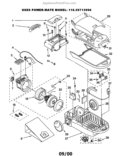 Parts for Kenmore 116.29713996 (11629713996, 116 29713996): Vacuum Cleaner Parts