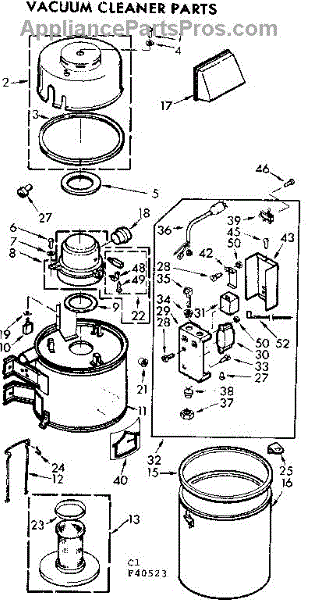 Parts for Kenmore 116.40523 (11640523, 116 40523): Vacuum Cleaner Parts