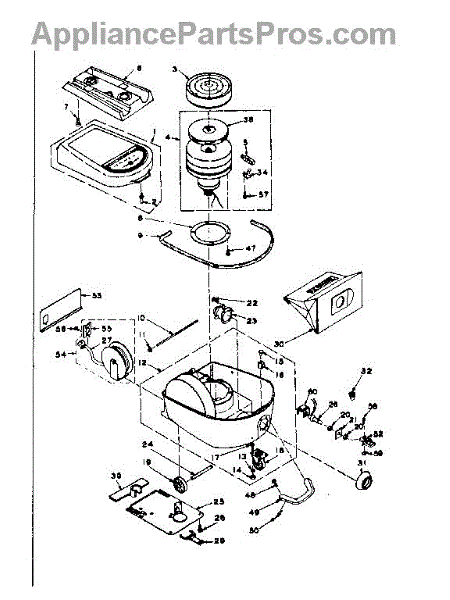 Base mounting screw for vacuum cleaners. Secures the bottom housing and internal components. Replace if screw is stripped, missing, or loose.